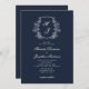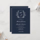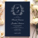 Elegant Monogram Crest Navy Blue Wedding Invitation