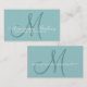 Elegant Monogram Customisable Aqua Business Card