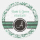 Elegant Monogram Damask Save The Date Wedding Stickers. Make a lasting impression with this Elegant Monogram Damask Save The Date Wedding Stickers . There is a stripe along the sticker and a circle with an elegant monogram on it. The beautiful mint green and white damask pattern background adds style and finesse. Designed by Olympia. Classic and sophisticated yet contemporary at the same time. Design available in several colours. Personalise it with your text. You can change text and use it as Thank You stickers or any other use you think.