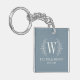 Elegant Monogram Dusty Blue Family Name Key Ring