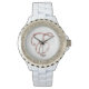 Elegant Monogram E Rose Gold on White Background, no actual rose gold is used in the making. Rhinestone White Enamel Monogrammed Watch