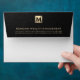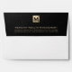 Elevate your professional correspondence with our Elegant Monogram Envelope tailored for financial planners, attorneys, and wealth management advisors. This envelope features a brushed gold monogrammed logo emblem, along with your company's name, address, and contact information in timeless golden typography, all set against a luxurious black leather print background. Exuding sophistication and professionalism, this envelope is perfect for sending important documents, legal correspondence, and financial reports. Make a strong impression with clients and partners by showcasing your commitment to excellence. Ensure your communication reflects your expertise and class, leaving a lasting impact. Invest in this Elegant Monogram Envelope and demonstrate your dedication to providing exceptional financial planning services.