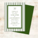 Elegant Monogram Forest Green Striped Wedding Invitation