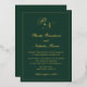 Traditional style forest green and gold foil wedding invitation featuring a simple and classic design with your two initial monogram and your names in an elegant calligraphy inside of a thin border. All design elements on the front are printed in real foil. This luxury Wedding Invitation with a timeless design is perfect for a formal wedding.