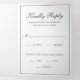 Traditional and classy all in one wedding invitation template with rsvp card and enclosure card attached, making this invitation suite convenient and budget friendly. The wedding invitation has your two initial monogram and your names in an elegant calligraphy inside of a thin border along with your favourite photo on the back. All design elements are in forest green and may be changed to any colour you wish in the design editing tool. The RSVP postcard has your mailing address on the back and your guests simply cut off and mail back to you. NOTE: First class postage is required for the RSVP postcard. Postcard stamps will not be enough postage due to the size. This classic design is perfect for a formal wedding. All-in one invitations are convenient and budget friendly.