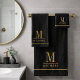 Elegant Monogram Gold Name Black Bath Towel Set