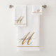 Elegant Monogram Gold Script Name White Bath Towel Set