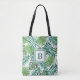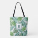 Elegant Monogram Green Botanical Palm Leaves Tote Bag
