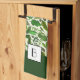 Elegant Monogram Green Botanical Pattern kitchen towel.