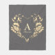 Modern, elegant, stylish grey fleece blanket with elegant gold foliage heart monogram.