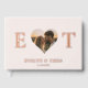 Capture the memories of your special day with our personalised wedding guest book, crafted in a luxurious style. The front cover features your personalised couple’s monogram in an elegant serif font, rendered in real foil, for a touch of sophistication. Between the monogram, display your cherished photo in a heart frame, creating a beautiful and heartfelt centerpiece.