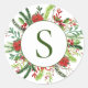 Elegant Monogram Holiday Winter Wreath Classic Round Sticker