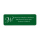 Elegant custom Monogram, Initial, hunter green and white classic simple chic Return Address labels.