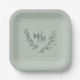 Elegant Monogram Laurel Wreath Sage Wedding Paper Plate