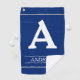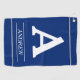 This elegant, blue golf towel design features a large, personalised monogram/initial letter, along with a customisable name. It could be a fun gift for somebody who likes playing golf.