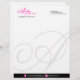 Copyright © 2013 Socialite Designs. Our monogram design business stationery has elegant hot pink script text and background monogram in light grey, which you can even make lighter by customising. The footer has a black glow design and hot pink social media icons, which can be deleted individually. This letterhead matches our business card design. Please contact Socialite Designs if you would like a colour change or help with customising. We recommend that you contact us so that we can do the alignment for you so that all design elements are centred appropriately. All design elements can be moved, resized or deleted individually to suit your requirements.
