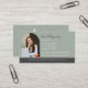 Elegant and professional agent business card with an arched photo that makes a great first impression. This design features your name in handwritten lettering, monogram logo and title in block lettering on a dusty blue and green background. Easily modify the contact numbers, email, website, and address to represent your business.
