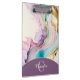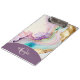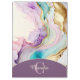 A feminine elegant liquid ink design in pink, purple, turquoise and gold. Personalised with monogram and name.