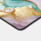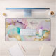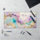 A feminine elegant liquid ink design in pink, purple, turquoise and gold. Personalised with monogram and name.