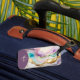 A feminine elegant liquid ink design in pink, purple, turquoise and gold. Personalised with monogram and name.