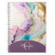 A feminine elegant liquid ink design in pink, purple, turquoise and gold. Personalised with monogram and name.