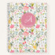 Romantic chic feminine pastel colourful spiral notebook with watercolor blush pink, yellow, blue, and sage green modern wildflowers blooms and foliage. Personalise it with your name and monogram initial in an elegant calligraphy script! ++++++++++++ Could be a pretty customised keepsake gift for a girlfriend, wife, mother, or sister on a birthday, Mother's Day, wedding, Christmas, Sweet Sixteen, or any other occasion.