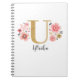 A beautiful, feminine monogrammed pink floral notebook, featuring pink flowers and a faux gold monogram letter U. Personalise the notebook by adding your name underneath the monogram. Makes a fun gift for a friend or for a bridesmaid gift. Designed for you by Blackberry Boulevard.