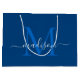 Elegant Monogram Navy Blue White Elegant Script Name Large Gift Bag