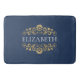 An elegant Navy Blue and gold flourish monogram bath mat. Add your name between the gold floral flourish on the front. Designed for you by Blackberry Boulevard.