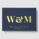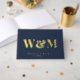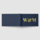 Elegant dark navy blue wedding guest book featuring your choice of real gold, silver or rose gold foil, your monogram initials in large classic serif typography, your first names and your wedding date. Add a title on the spine.