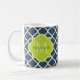 Elegant Monogram Navy Green Quatrefoil and Name Coffee Mug