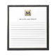 Elevate your law office with our Elegant Monogram Logo Lined Notepad. Featuring a brushed gold monogram initial at the top and your law office name below, presented in sleek black typography on a clean white background. The design is framed with refined black lines, adding a touch of sophistication. This notepad is perfect for jotting down notes, ideas, and important information, making it a practical and stylish addition to any attorney's workspace. Ideal for law offices, law firms, and attorneys seeking to enhance their professional image and organisation.