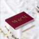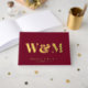 Elegant burgundy red wedding guest book featuring your choice of real gold, silver or rose gold foil, your monogram initials in large classic serif typography, your first names and your wedding date. Personalise with your photo on the back and a title on the spine.