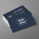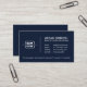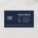 This elegant navy blue professional business card features a two or three letter personalised monogram inside a rounded corner square, representing either a business or personal brand with custom text for a slogan or tagline across it. Beside the monogram neatly positioned on the right, is the cardholder’s name, designation and contact details, including email, phone and social media handles. The reverse side showcases the monogram in a larger size, centred on the card, enhancing its minimalist elegance. The simple and sophisticated layout embodies luxury and modernity.