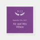 Adorning the majestic purple background is delicate white script typography, meticulously crafted to exude grace and charm. The elegant swirls and curves of the script add a touch of whimsy to the napkins, while ensuring clarity and readability for guests as they enjoy their dinner and cocktails.