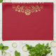 Elegant Monogram Red Gold Christmas Kitchen Towel