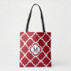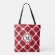 Elegant Monogram Red Quatrefoil Pattern Name Tote Bag.