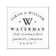 Elegant return address rubber stamp features your first names curved gracefully over your single initial monogram, with your family name and return address details beneath in classic block and italic lettering.