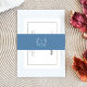 Elegant royal blue botanical monogram wreath invitation belly band.