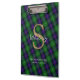Enjoy your ancient Scottish Sutherland Clan connection by displaying the family’s green and blue tartan and your personal monogram and name on this handsome clipboard. Suitable for home, school, office or leisure activities, this clipboard will keep you organised as well as sharing a bit of your family's tradition.