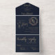Elegant Monogram Script Navy Gold Wreath Wedding All In One Invitation
