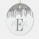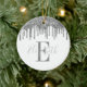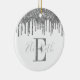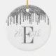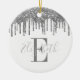Elegant Monogram Silver Glitter Drip Ceramic Ornament
