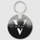 Elegant Monogram Silver Glitter Girly Black Custom Key Ring
