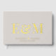 Elegant taupe wedding guest book featuring your choice of real gold, silver or rose gold foil, your monogram initials in large classic serif typography, your names joined together by a heart and your wedding date in simple typography. Personalise additional text on the spine.