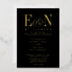 Elegant Monogram Black Gold Foil Wedding Invitation. Features gorgeous customisable bride and groom monogram initials with ampersand. Gold foil text on Black background. Personalise with your Monogram initials and wedding text. Foil options include gold silver and rose gold. Background can be any colour you choose. We invite you to visit our Zazzle store, GJ Design Co, to view matching products and more.