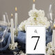 The clean layout keeps the focus on the table number, making it easy for guests to locate their seats while maintaining a polished, upscale appearance. The subtle monogram detail at the top adds a personalized touch that beautifully coordinates with matching wedding stationery and décor.