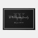 Elegant Monogram Wedding Welcome Outdoor Doormat. Personalised white, grey monogram design with bride and groom's last name and date established on a black background. A unique cool gift for newlyweds. Lovely for their new life together. Also a beautiful housewarming gift. Click Personalise this template to customise it with the Monogram last name initial, the family name, and the date established quickly and easily. Elegant Monogram Wedding Welcome Outdoor Doormat, is part of the Newlyweds & Wedding Gifts Collection in this store. Ships Worldwide Fast.