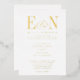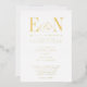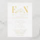 Beautiful Elegant Monogram White Gold Foil Wedding Invitation. Features gorgeous customisable bride and groom monogram initials with ampersand. Gold foil text on white background. Personalise with your Monogram initials and wedding text. Foil options include gold, silver and rose gold. Background can be any colour you choose. We invite you to visit our Zazzle store, GJ Design Co, to view matching products and more.