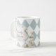 Elegant Monogram White Roses Green Leaves Diamond Coffee Mug