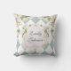 Elegant Monogram White Roses Green Leaves Diamond Cushion